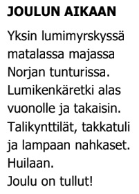 Tehtävä: Kirjoita runo tai teksti aiheesta Pohjolan Joulu